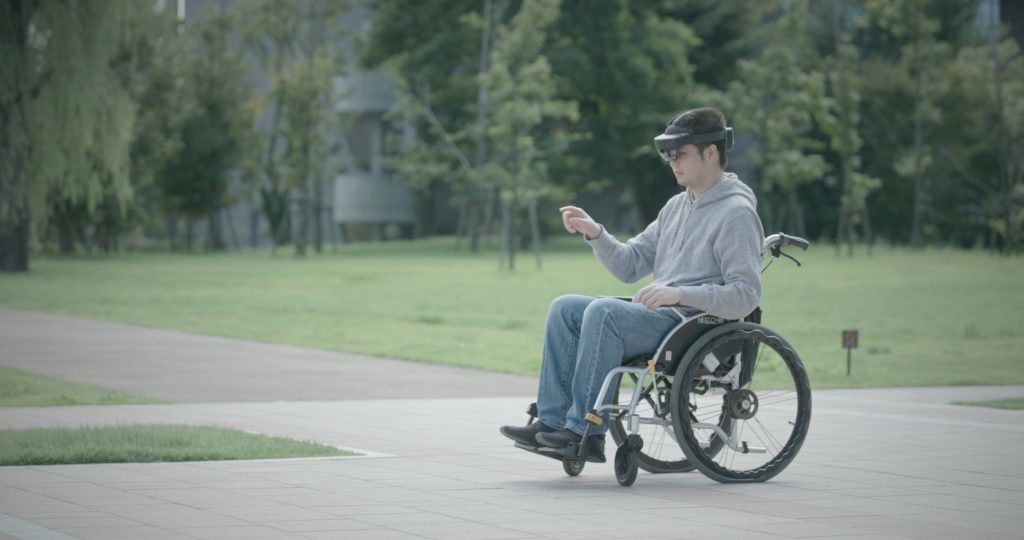 WHEE〈ウィー〉は、車いすユーザーの屋外での単独行動を支援するために開発されたシステム。カメラとセンサーを内蔵した車いすデバイスとARコンテンツを組み合わせ、移動そのものを楽しく、より自由な体験へと拡張していく。